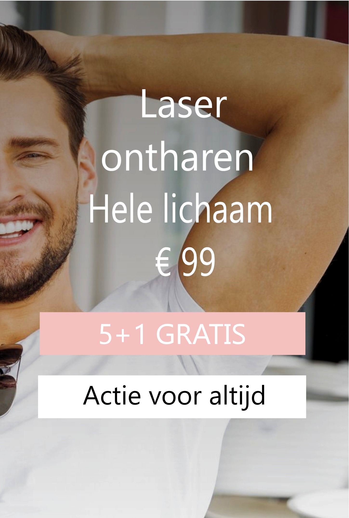 Laser ontharen Den Haag hele lichaam € 99 voor mannen en vrouwen. Koop je 5x, dan betaal je € 82 per keer. Koop je 10x, dan betaal je € 76 per keer. Koop nu 5 + 1 GRATIS - Koop nu 10 + 3 GRATIS - Laser ontharen Den Haag voor mannen hele lichaam €99 | Koop nu 5 + 1 GRATIS Hele lichaam voor slechts € 83 | Koop nu 10 + 3 GRATIS Hele lichaam voor slechts € 77 | #1 Laser ontharen voor mannen in Den Haag & Amsterdam | Speciaal actie mannen laser ontharen €99 hele lichaam | Mannen laser ontharen #1 Laser in Den Haag & Amsterdam | #1 Lasercenter Den Haag | Wij helpen mannen graag verder met laseren, neem gerust contact op | Mannen acties hele lichaam laseren €99 (Alle lichaamsdelen) | Profiteer nu van korting op premium laserbehandelingen | Acties hele lichaam laseren €99 (van je hoofd tot je tenen) in Amsterdam & Den Haag... | 5 + 1 gratis - haar laseren den haag | Hele rug €45 laseren in Amsterdam & Den Haag | Schouders €25 laseren in Amsterdam & Den Haag | Borst 25 laseren in Amsterdam & Den Haag | Buik €25 laseren in Amsterdam & Den Haag | Gezicht €25 laseren in Amsterdam & Den Haag | Bovenlip €10 laseren in Amsterdam & Den Haag | Bakkebaard €15 laseren in Amsterdam & Den Haag | Oren €15 laseren in Amsterdam & Den Haag | Hals €15 laseren in Amsterdam & Den Haag | Nek €15 laseren in Amsterdam & Den Haag | Oksels €15 laseren in Amsterdam & Den Haag | Wenkbrouwen €10 laseren in Amsterdam & Den Haag | Benen volledig €45 laseren in Amsterdam & Den Haag | Armen volledig €45 laseren in Amsterdam & Den Haag | Onderkin €15 laseren in Amsterdam & Den Haag | Handen €10 laseren in Amsterdam & Den Haag | Schaamhaar €20 laseren in Amsterdam & Den Haag | Bikinilijn €15 laseren in Amsterdam & Den Haag | Billen €20 laseren in Amsterdam & Den Haag | Bilnaad €15 laseren in Amsterdam & Den Haag | Voeten €10 laseren in Amsterdam & Den Haag | Snor €10 laseren in Amsterdam & Den Haag | Schaamlippen €20 laseren in Amsterdam & Den Haag | Laser ontharen in Den Haag, Amsterdam, Rotterdam... |