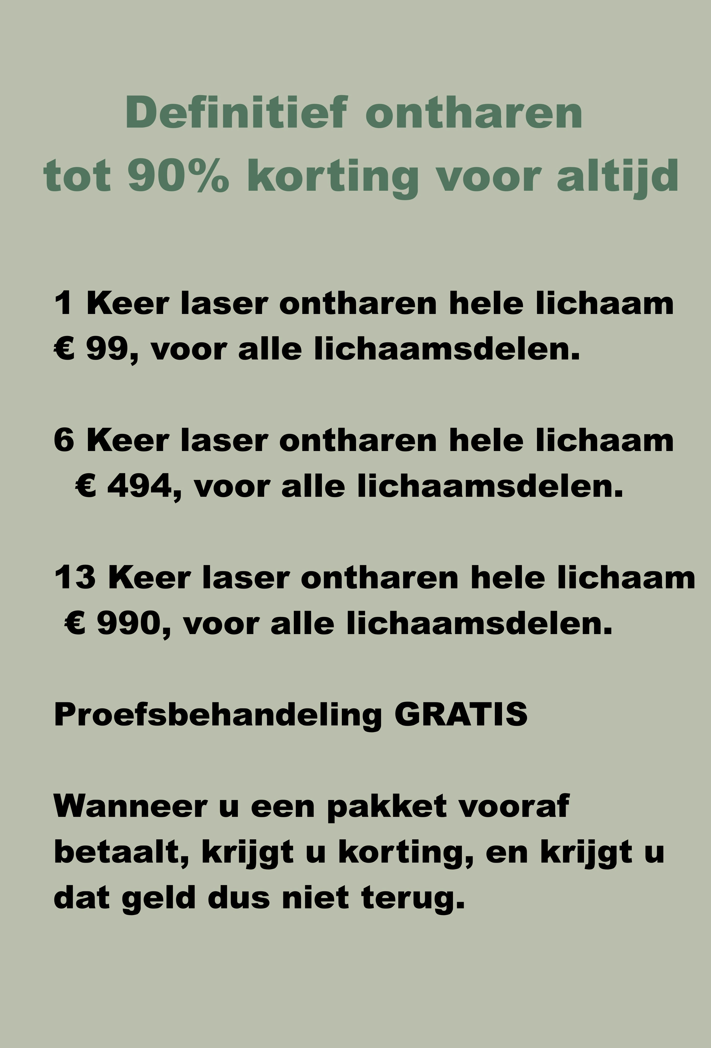 Super korting bij ons voor laserontharing met etra gratis behandelingen 5+1 GRATIS, en 10+3 GRATIS