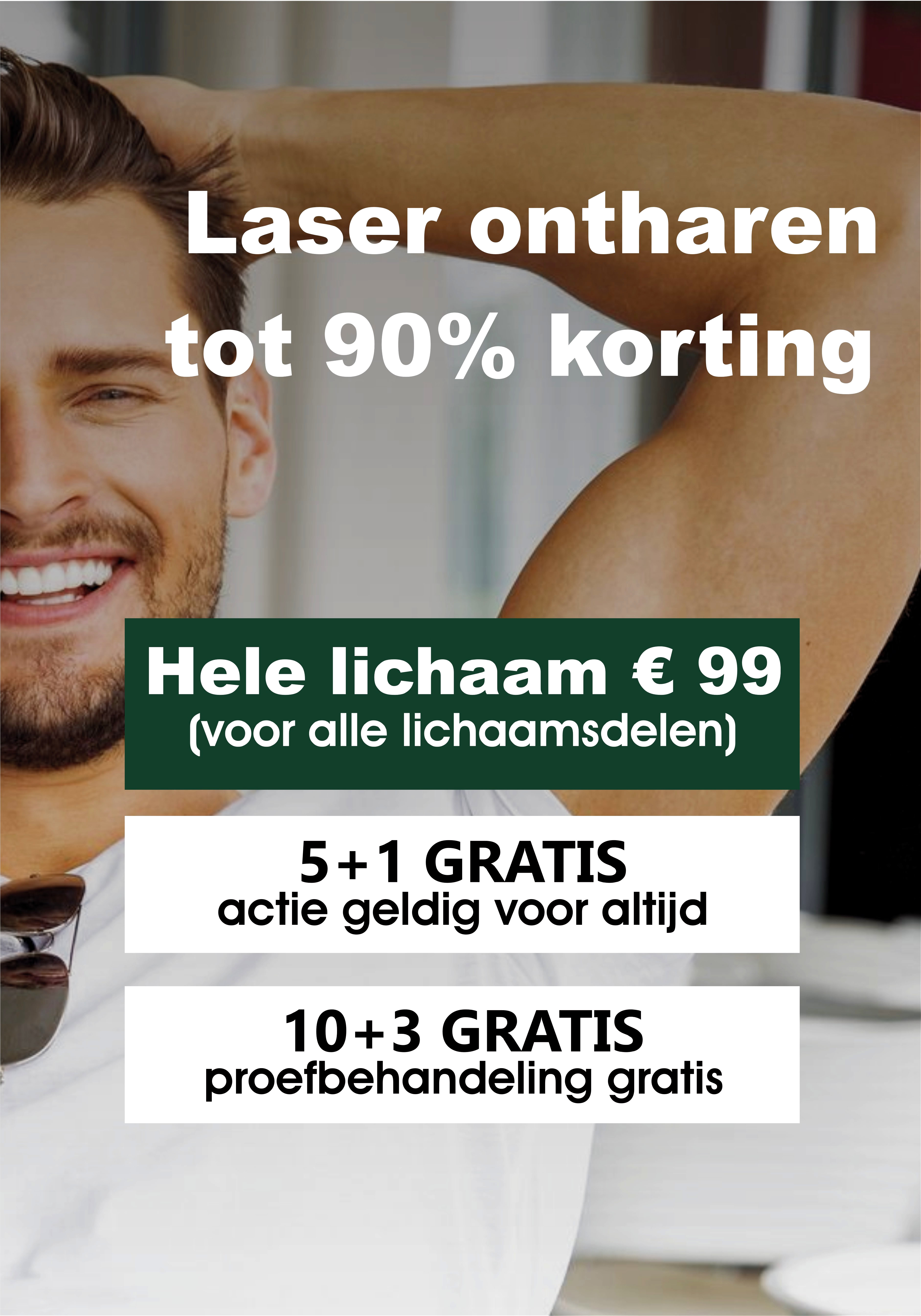 Laser ontharen Den Haag hele lichaam € 99 voor man & vrouw |