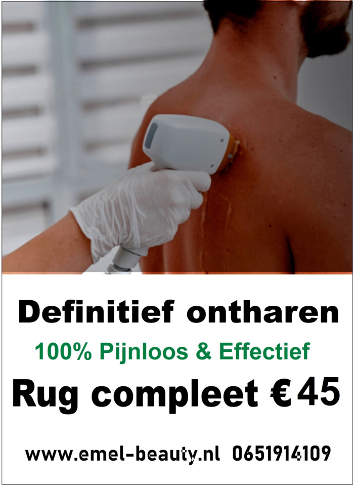 ntharen hele lichaam € 99 - 10+3 GRATIS - Maak nu gebruik van dit unieke aanbod - Ontdek hoe wij dat doen - Klik hier... - Laser ontharen in Den Haag dicht bij Amsterdam - Tarieven bij Emel Beauty | bekijk onze scherpe prijzen voor hoogwaardige behandelingen | Ontdek de tarieven bij Emel Beauty. Wij bieden scherpe prijzen voor hoogwaardige behandelingen. Bekijk onze prijslijst en boek een afspraak in Rotterdam, Breda of Hoofddorp voor professionele skincare en uitstekende resultaten. | Onze actie met korting tot 90% is permanent. - Emel Beauty. Blij met je huid Maak afspraak Terug Laserbehandelingen Laserontharen Laserontharen ‘Dit had ik veel eerder moeten doen!’. Duurzame ontharing van | Ontdek de tarieven bij Emel Beauty. Wij bieden scherpe prijzen voor hoogwaardige behandelingen. Bekijk onze prijslijst en boek een afspraak - Definitief ontharen hele lichaam € 99 Den Haag - 5+1 GRATIS elke 6e behandeling GRATIS Den Haag - Hele rug € 45 - Borst € 25 - Buik € 25 - Schouders € 25 - Bakkebaard € 15 - Hele benen € 45 - Hele armen € 45 - Hele gezicht € 25 - Schaamhaar € 20 - Bikinilijn € 15 - Billen € 20 - Bilnaad € 15 - Oren € 15 - Buikstreep € 10 - Oksels € 15 - Permanente ontharen hele lichaam € 99 Den Haag - 5+1 GRATIS - Definitief ontharen bij ons is € 99 voor hele lichaam - Hele lichaam lasern € 99 Den Haag - Koop nu 6X laser ontharen hele lichaam € 495 Den Haag - Nu bij ons met € 99 hele lichaam laseren - 100% pijnloos en veilig LASERONTHARING HELE LICHAAM € 99 - Kies voor laser ontharen voor volledige lichaam € 99 Den Haag - 1x volledig lichaam laseren € 99 Den Haag - 6x hele lichaam laseren € 495 Den Haag - 13x hele lichaam laseren € 990 Den Haag - Definitief & permanente ontharenontharen hele lichaam € 99 Den Haag - In Den Haag en omgeving, Amsterdam - IN DEN HAAG PERMANENTE & DEFINITIEVE ONTHAREN HELE LICHAAM € 99 Den Haag - IN DEN HAAG PERMANENTE ONTHAREN HELE LICHAAM € 99 Den Haag - Den Haag hele lichaam laseren € 99 Den Haag - Permantent & definitieve laser ontharing € 99 volledig lichaam Den Haag - Permanente ontharen hele lichaam € 99 Den Haag - 5+1 GRATIS - Definitief ontharen bij ons is € 99 voor hele lichaam - Hele lichaam lasern € 99 Den Haag - Koop nu 6X laserontharing hele lichaam € 495 Den Haag - Nu bij ons met € 99 hele lichaam laseren - 100% pijnloos en veilig LASERONTHARING HELE LICHAAM € 99 Den Haag - Kies