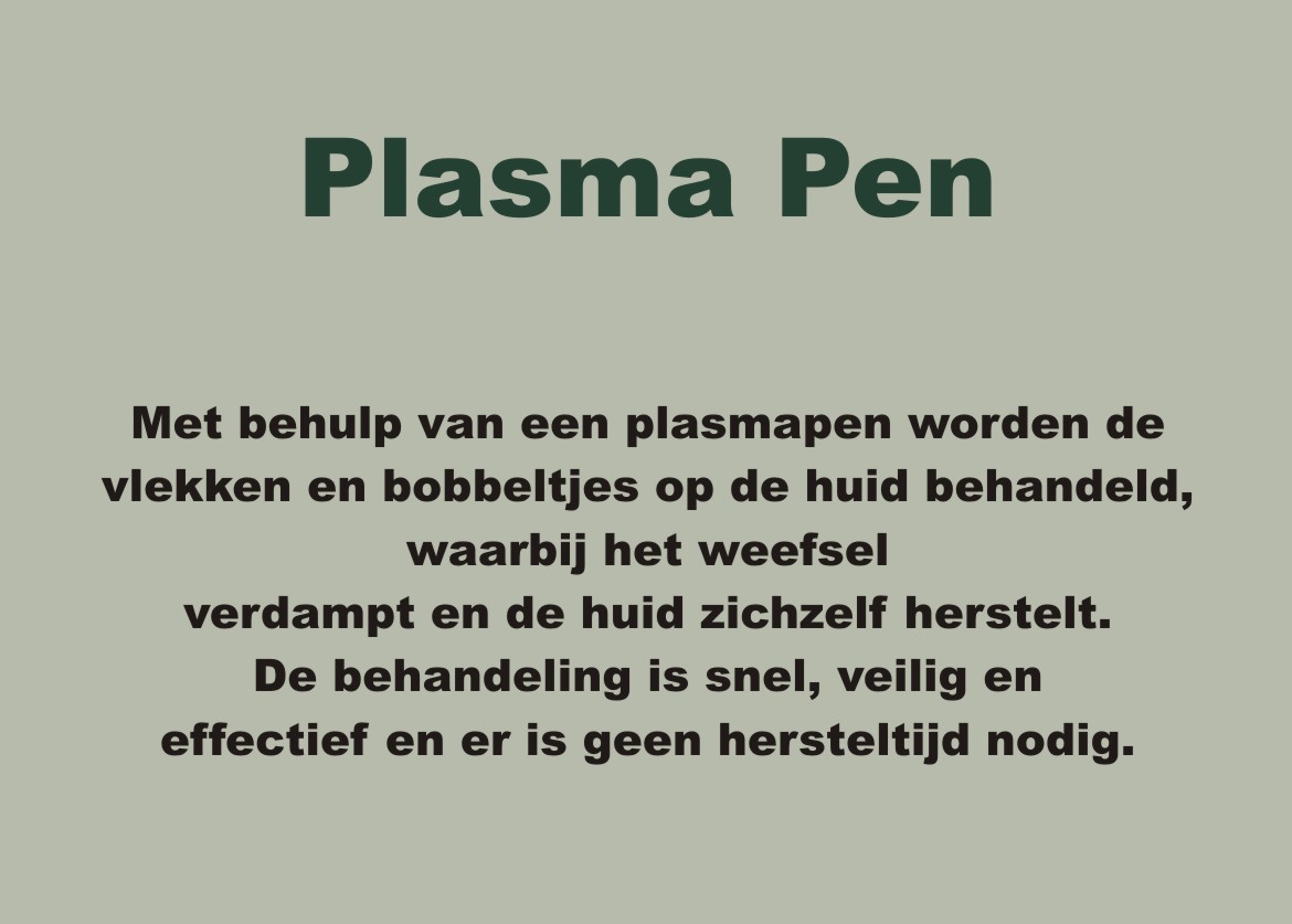 Pigmentvlekken verwijderen De plasma pigmentvlek behandeling is een behandeling met een plasmapen die een lichtflits genereert. Heeft u last van pigmentvlekken, huidvlekken, acnelittekens? In dit geval is een behandeling met de Plasmapen precies goed voor u. De Renouveau plasmapen is een apparaat dat is ontworpen voor minimaal invasieve procedures.